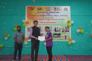The programme was graced by Shri Amit Kale, IAS, Deputy Commissioner, Nicobar District, as the chief guest. He felicitated the medal winners with appreciation certificates and as a token of encouragement a cash prize on recognition and encouragement and congratulated them for their remarkable achievements. In his address, he encouraged the youth to continue striving for excellence and assured continued support from the District Administration for the promotion and development of sports in Nicobar.